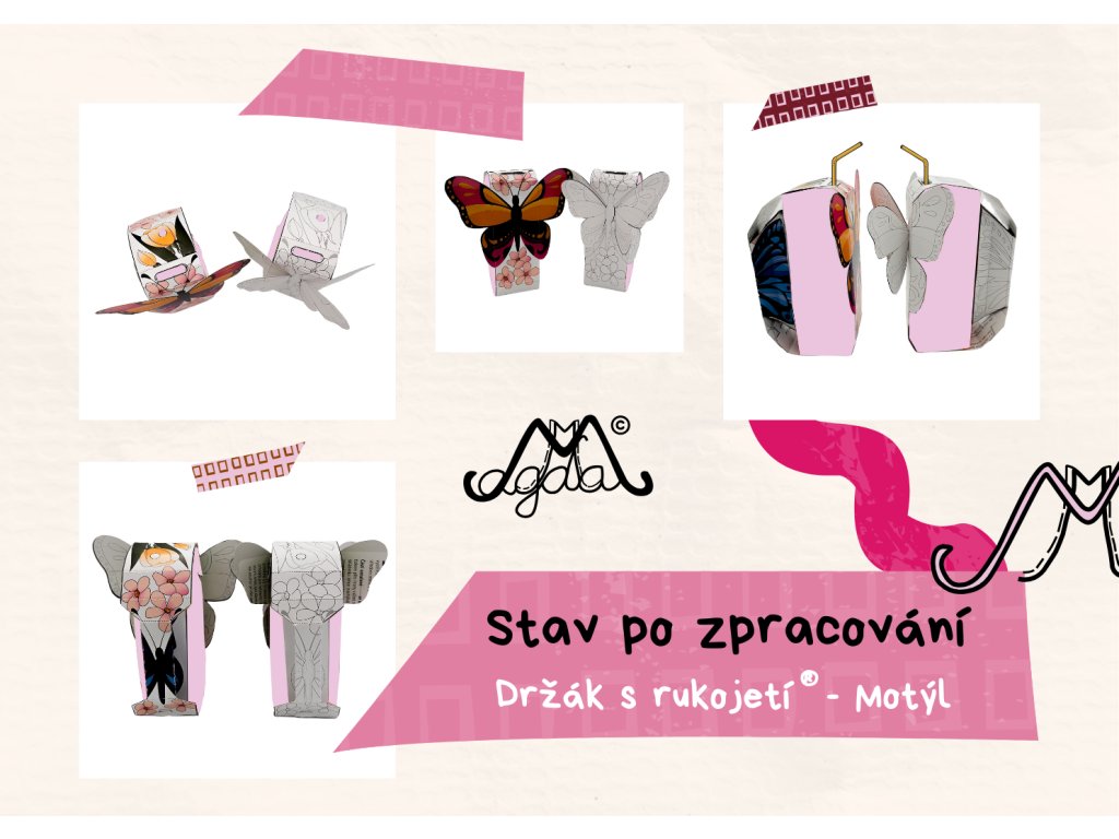 MOTÝLCI jsou kouzelná vystřihovánka, která promění kreativní chvíle v něco opravdu užitečného. Děti si je nejprve vybarví, vystřihnou a složí podle návodu, a nakonec je použijí jako praktický držák na svůj oblíbený nápoj. Díky přiloženému suchému zipu se rukojeť snadno zajistí a držák je připraven k použití – bezpečný, hravý a jejich vlastní.